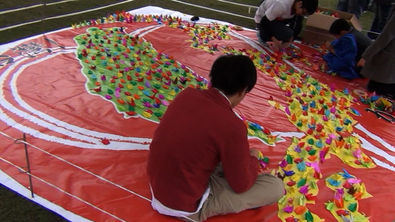 折鶴は、日本と台湾の地図の上に。