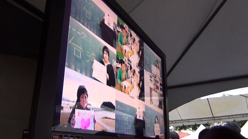またモニターには、Masayuki Tsujiさんが被災地で撮影した「謝謝台湾」のメッセ
