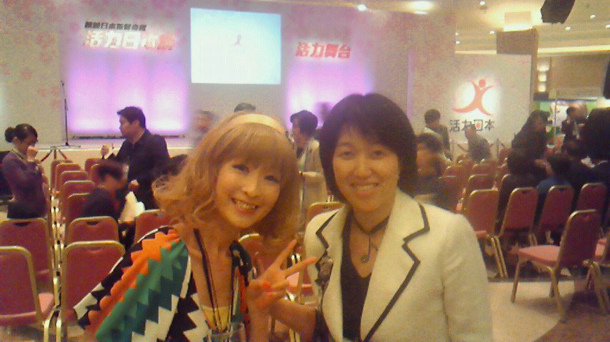 こちらは、元気な日本の展示会。香港で、活躍中の、日本人タレント、じゃぱナビのりえさんと。