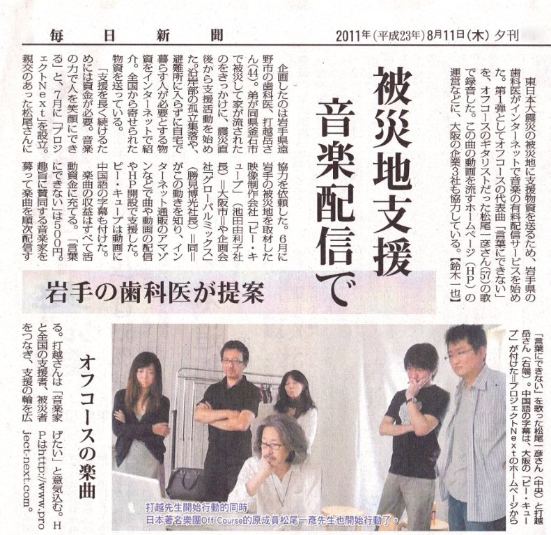 昨日の毎日新聞にプロジェクトNextの活動が掲載されました。^^