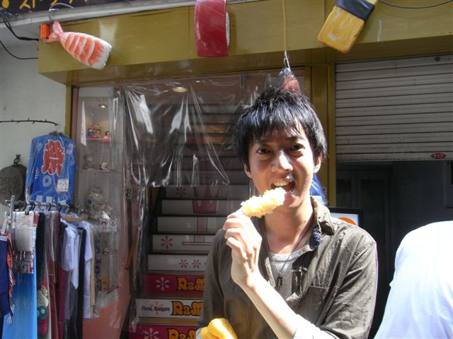 張さんが食べているのは、張さん自作の「エビのてんぷら」のサンプル。