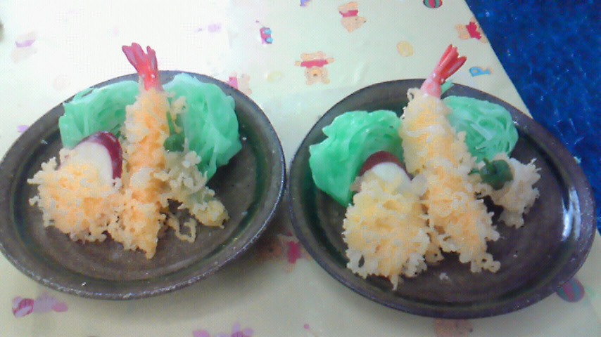 張さんが食べているのは、張さん自作の「エビのてんぷら」のサンプル。