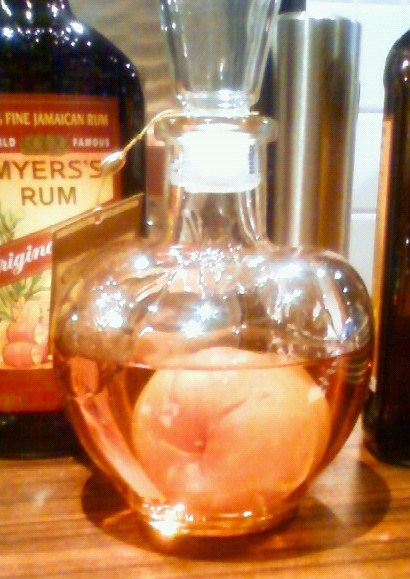 これ、ブランデーのボトルの中に、リンゴがまるまる1個入っているではないか!!